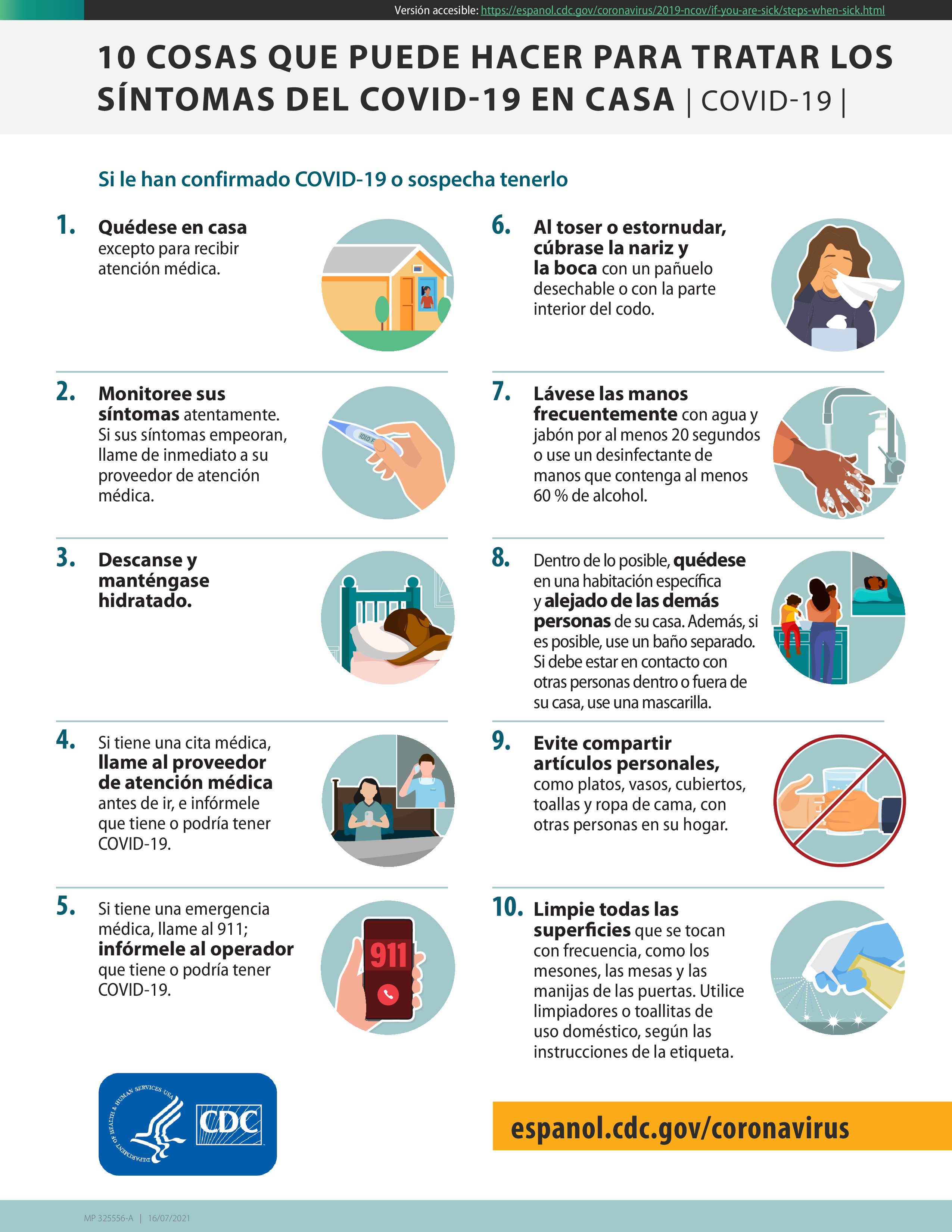 Factsheet: 10 Things You Can Do to Manage your COVID-19 Symptoms at Home (English, Spanish)