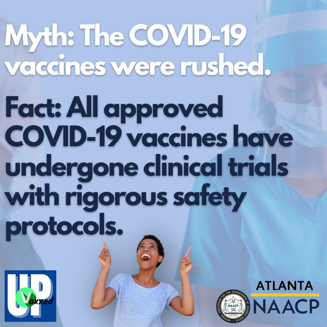 Graphic for social media discredits the myth that the COVID-19 vaccines were rushed and validates that vaccines have undergone rigorous clinical trials.
