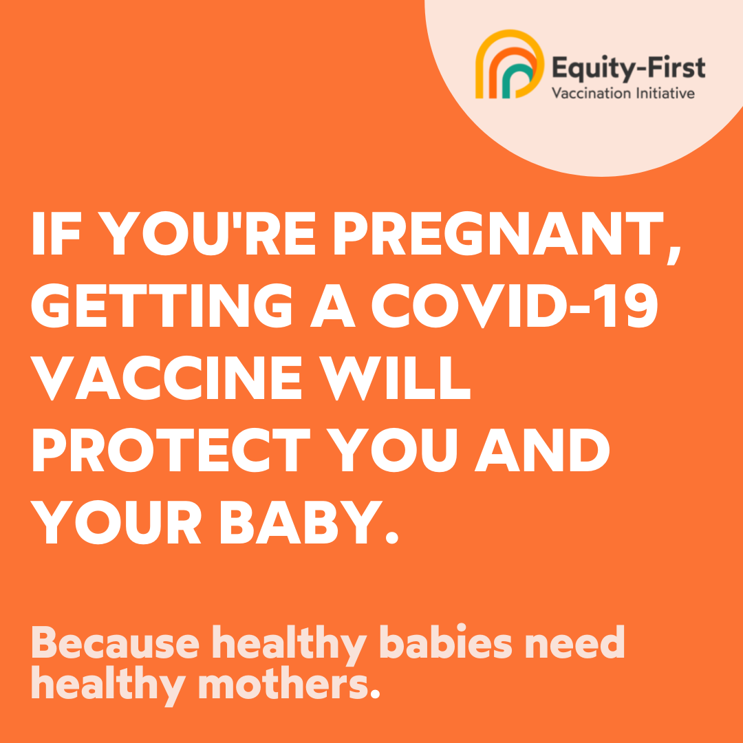 Graphic for social media encourages those who are pregnant to get vaccinated against COVID-19 to protect themselves and their baby.
