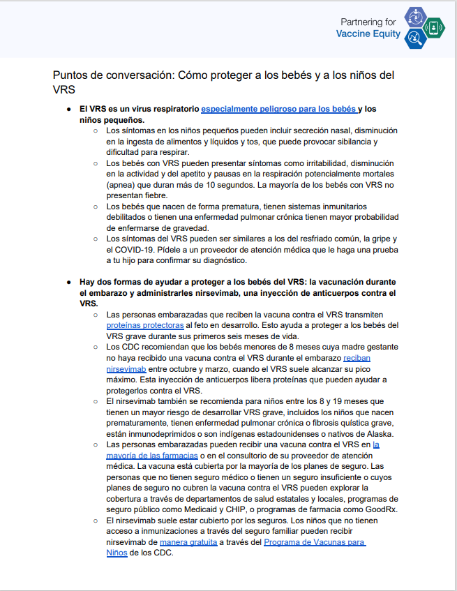 Talking Points and FAQs: How to Help Protect Babies and Kids from RSV (English, Spanish)